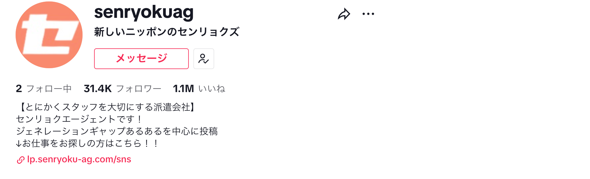 日本一のTikTokコンサルティング・運用代行サービス「TANT」(本社:神奈川県茅ヶ崎市、代表取締役社長:佐藤裕太(TikTok名 こまちゃん社長)が、2022年10月より運用代行を開始した、アイデムグループの総合人材派遣「センリョクエージェント」のTikTokを含むSNSが、累計総再生数61,047,426回を達成。人材系企業のTikTok活用が注目を集めている。