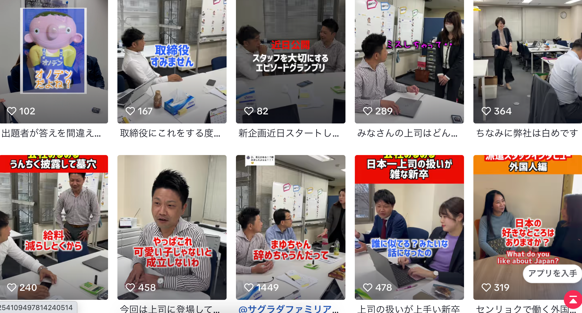 派遣・人材系企業の中で、いち早くTikTok運用を始めた同社では、社内人材を登場させた社内ネタを動画投稿し、これまでにないコストパフォーマンスを誇る広告効果を出している。