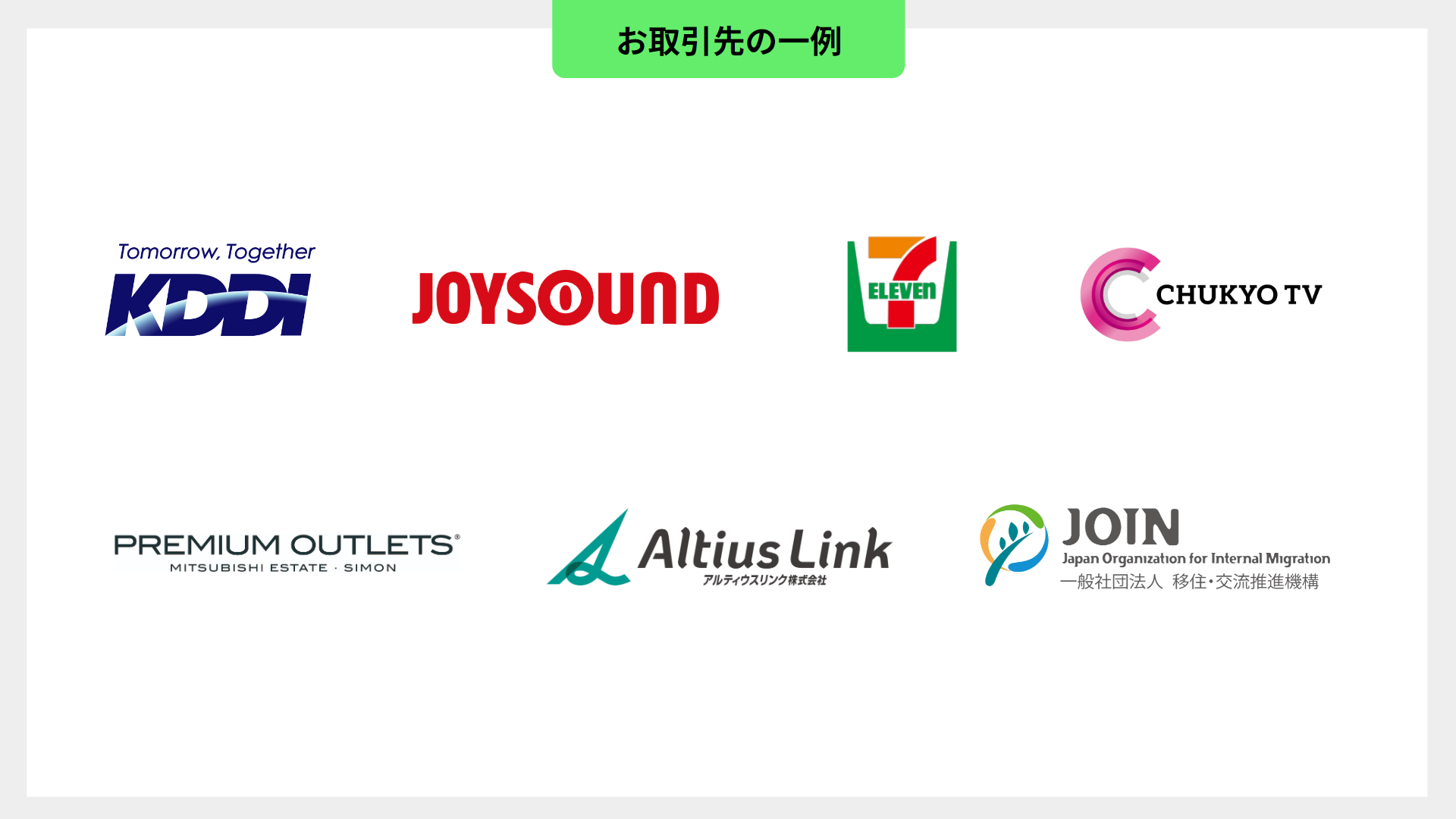 取引先の主な業種は、エンターテインメント業界・教育現場・マーケティングリサーチ業界・医療団体や病院施設・小売業など多岐に渡ります。また、地方自治体や県の教育委員会も含め様々な公的な機関にもご活用いただいています。