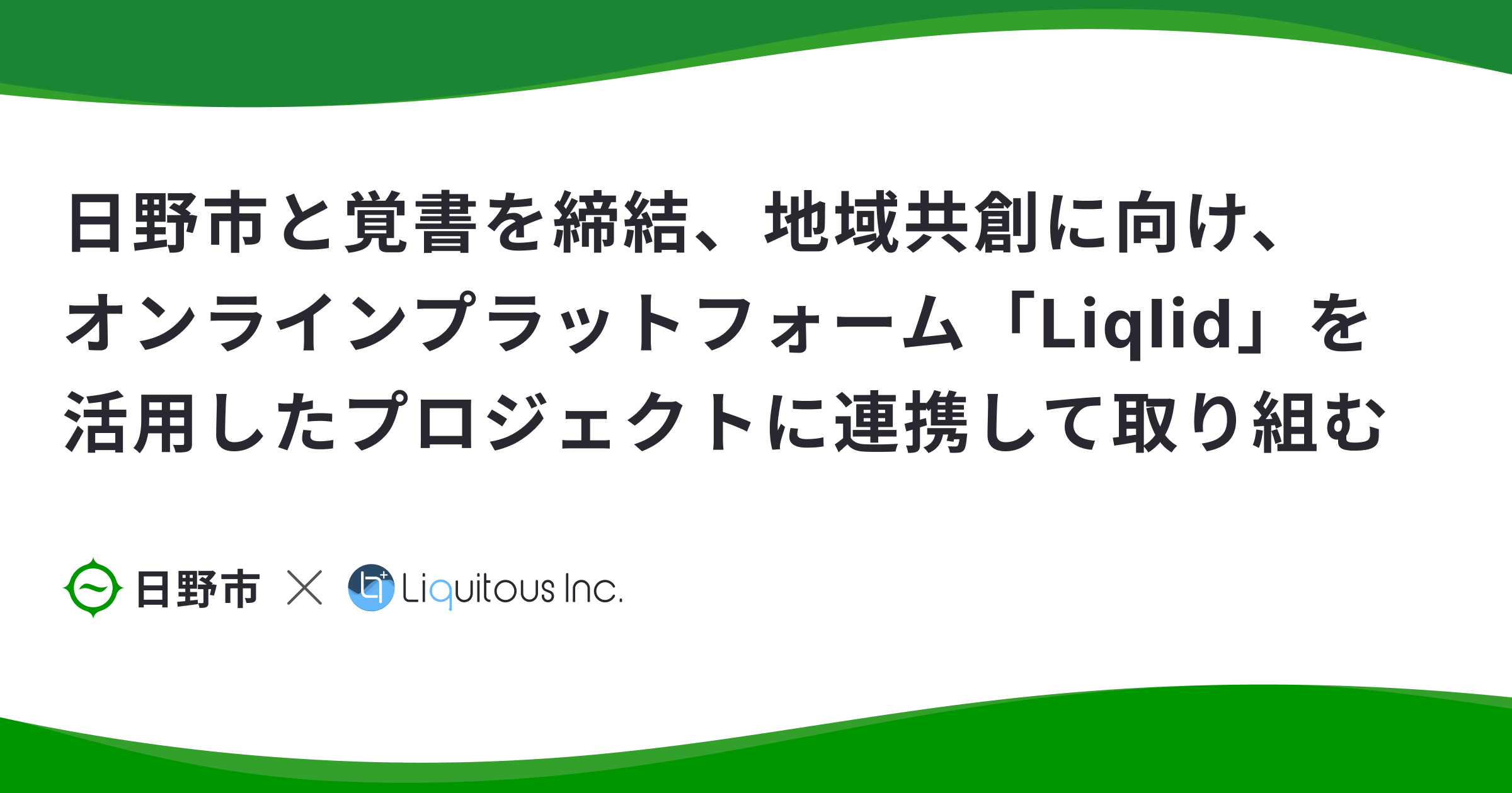 株式会社Liquitous(本社:神奈川県横浜市、代表取締役CEO:栗本 拓幸)は、東京都日野市(市長:大坪 冬彦)と「地域共創に資するオンライン合意形成プラットフォームの活用に関する覚書」を締結しました。
