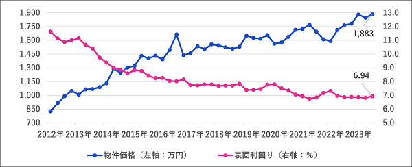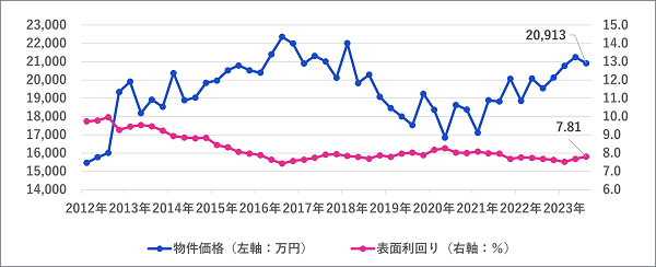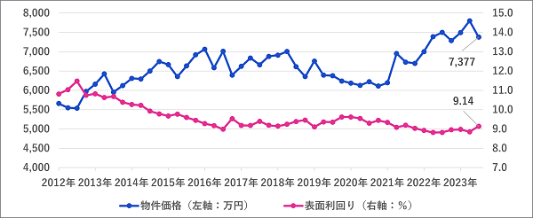 ※表面利回り・物件価格は期間中の平均 ※()内は前期比