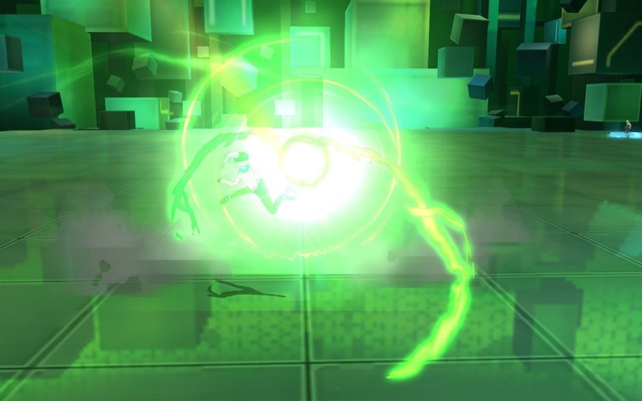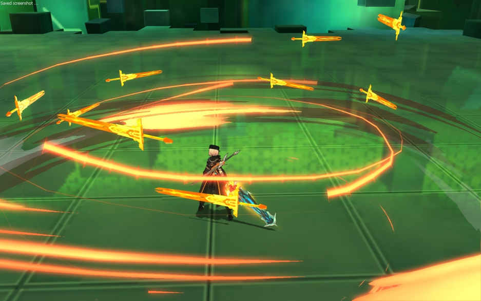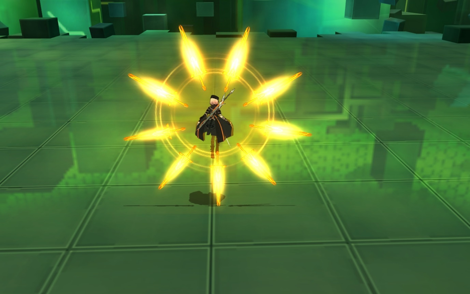 空中に浮かび、ソウルエナジーで光の剣を召喚。一定時間、キャラクター周囲の敵を斬ります。