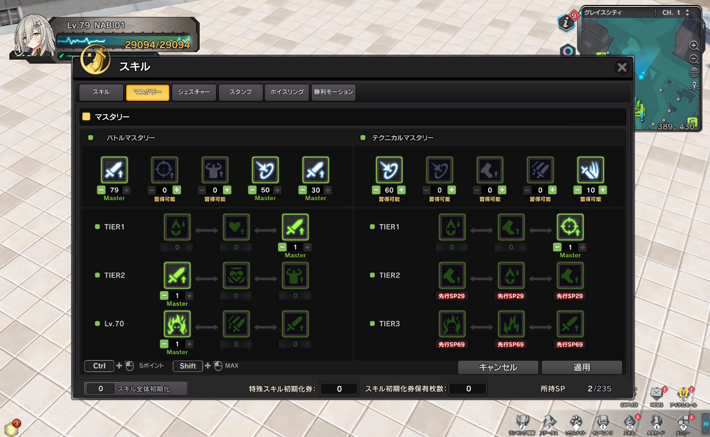・各ステータスマスタリーは、要求レベル・要求スキルポイント消費量充足時習得が可能です。