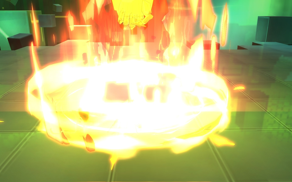 拳を振り下ろした場所に巨大な火柱が発生し、一定時間周囲の敵にダメージを与えます。