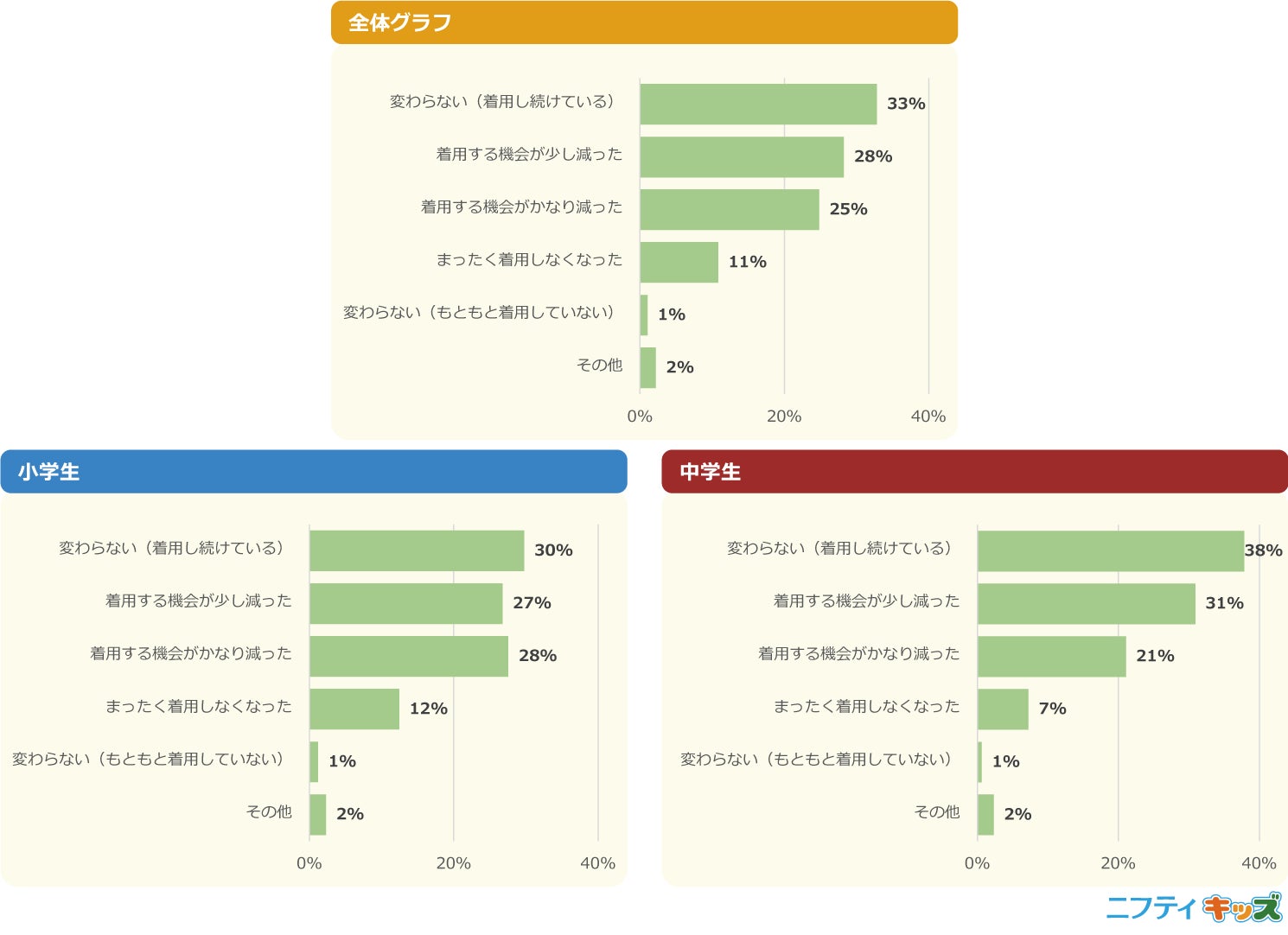 その他には「学校ではつけているけど、学校以外では外している」「屋外にいる時だけ外す」などの意見がありました。