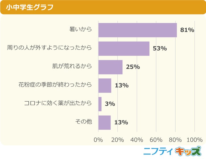 その他の回答には「マスクを外してもよくなったから」「マスク焼けが嫌だから」「親や先生に外してと言われたから」などがありました。