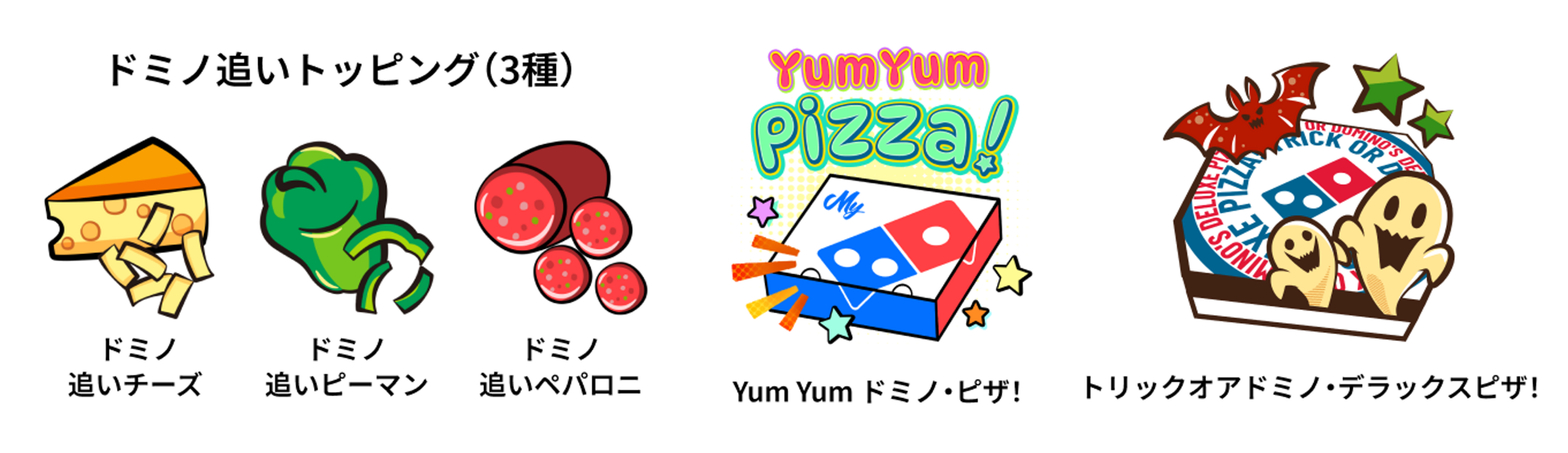 ●コラボアイテム:おなじみの「ドミノ・ピザ」をモチーフにした5種類のアイテムが、キャンペーン期間中限定に登場します