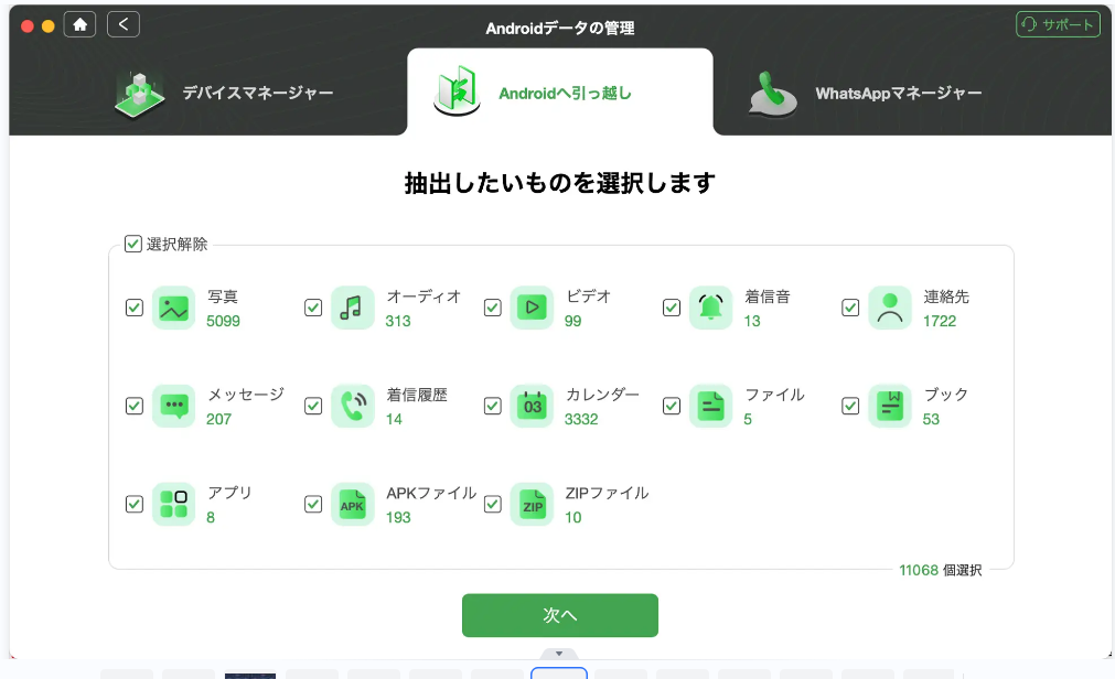 Step4.転送したいデータの種類を選択して、「次へ」をクリックします。