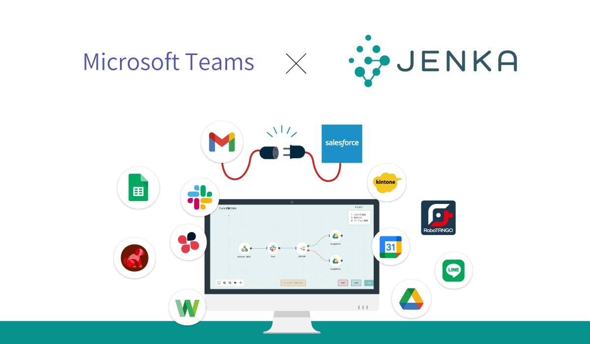 『JENKA』の最新アップデートでは、Microsoft Teamsとの連携機能を追加し、Microsoft 365ユーザーの業務効率を更に向上させます。2023年3月のリリース以降、さまざまなSaaSアプリケーションとのAPI連携を提供してきましたが、今回新たに「Microsoft Teams連携」を公開します。これはMicrosoft 365製品との連携の第一弾であり、今後はExcel OnlineやOneDriveなど、他のMicrosoft製品との連携も順次開始予定です。