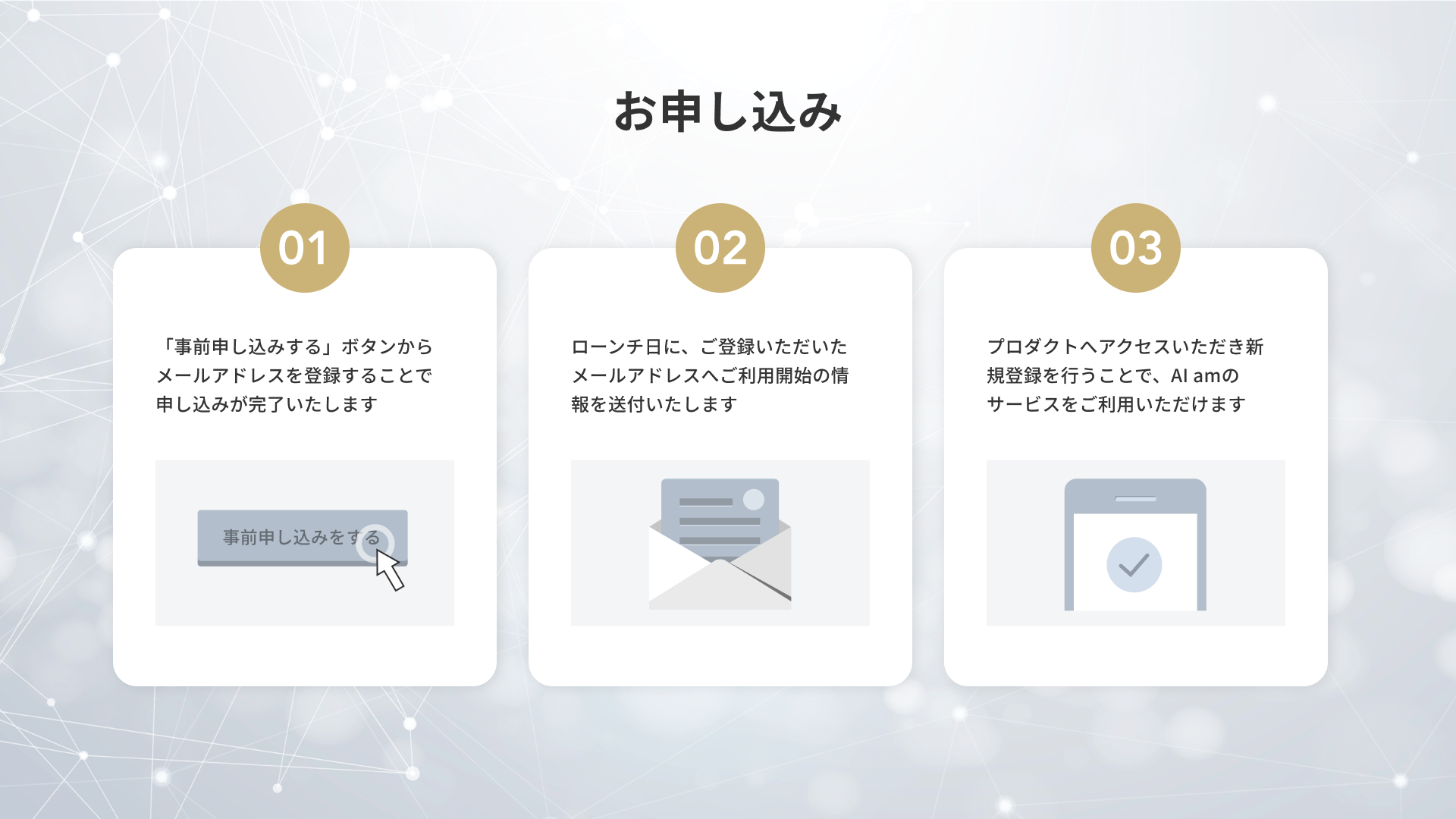 1.サービスページ(URL:https://ai-am-with.com/MAAYA)より「事前申し込みする」ボタンをクリック