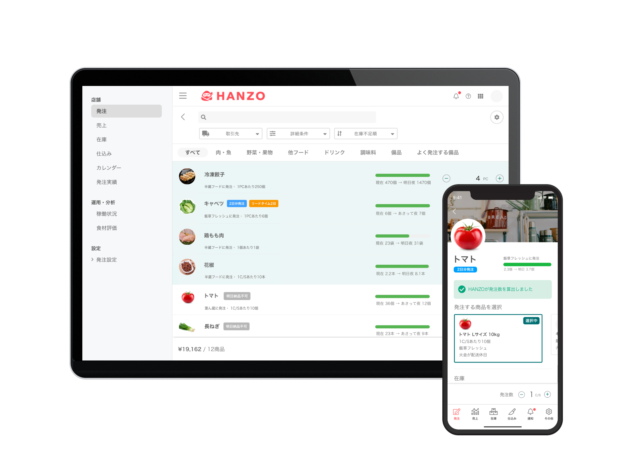 HANZOシリーズは飲食店のバックヤード業務をAIで自動化し、業務効率化・適正なコストコントロールに貢献するクラウドサービスです。