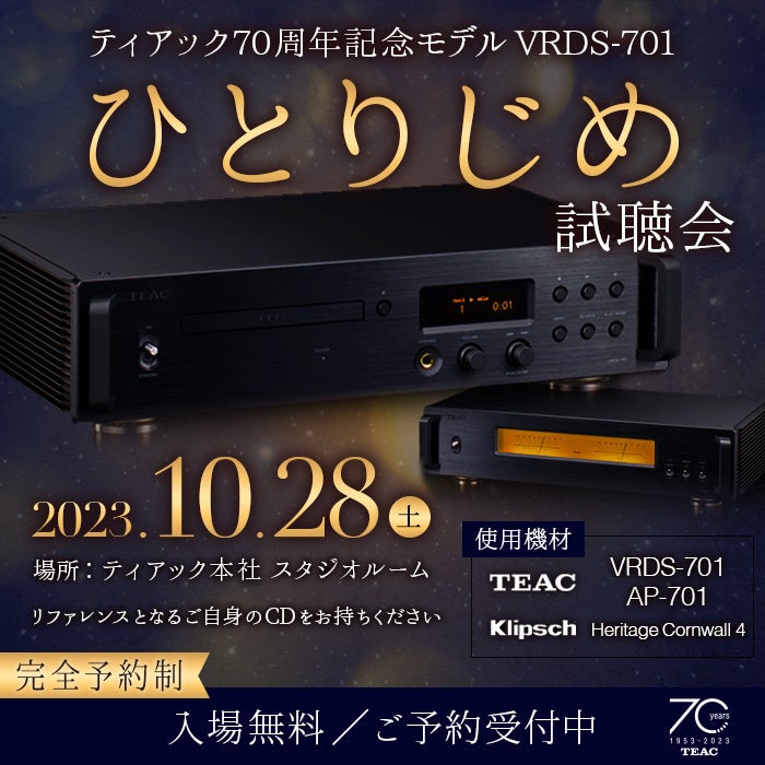 10月28日(土) ティアック70周年記念モデル 「VRDS-701」ひとりじめ試聴イベント開催のお知らせ