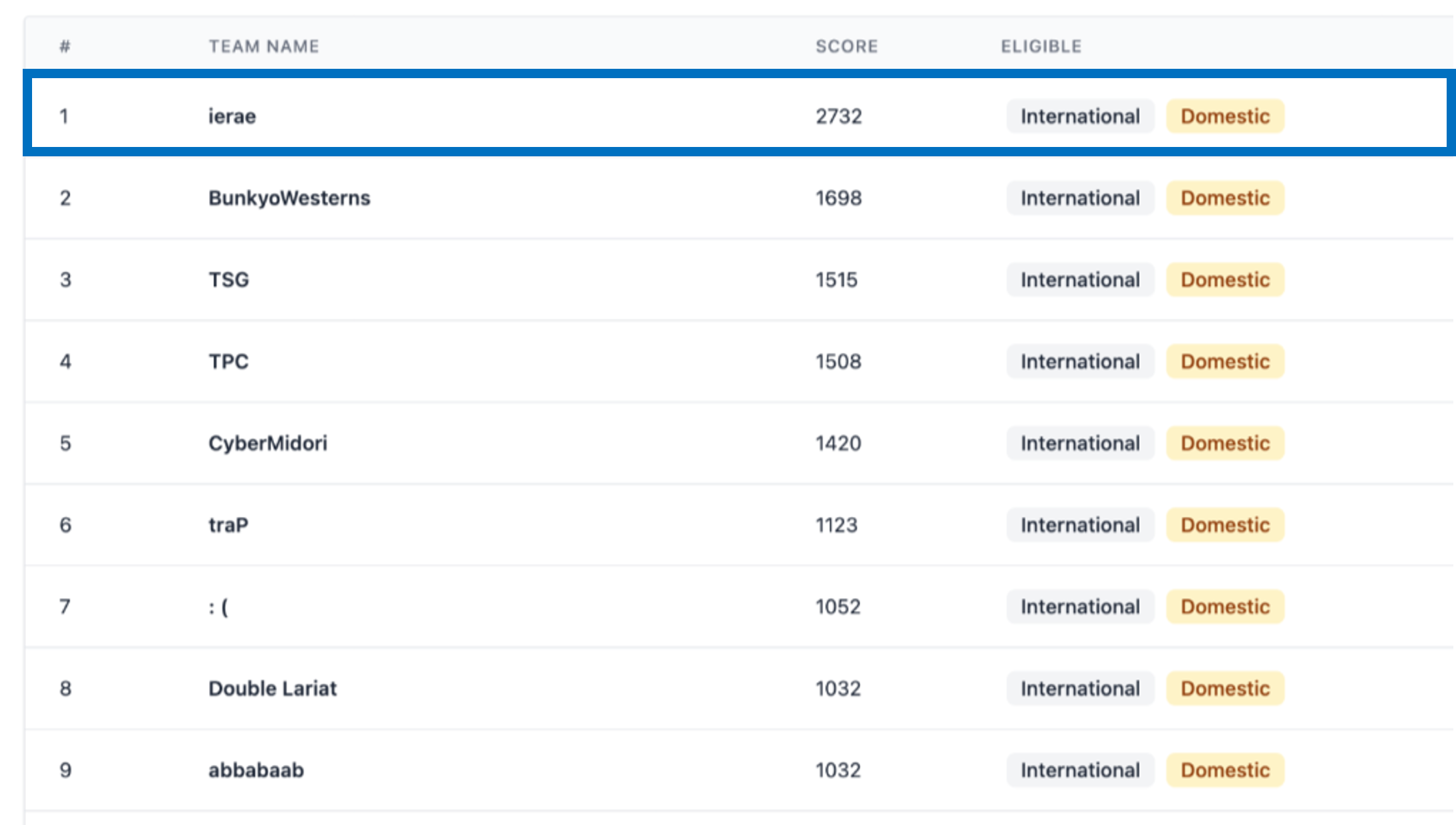 順位表、「GMOイエラエ」が国内チームとして最高位の1位を獲得しました!(青枠内)