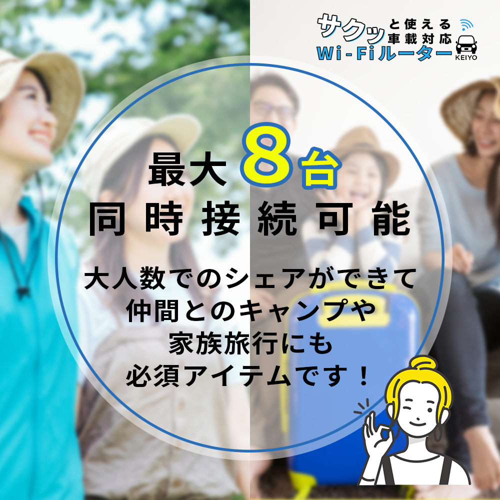 最大8台同時接続 ご家族・仲間で使用するのに最適です。旅行やキャンプ遠出の必須アイテムです。