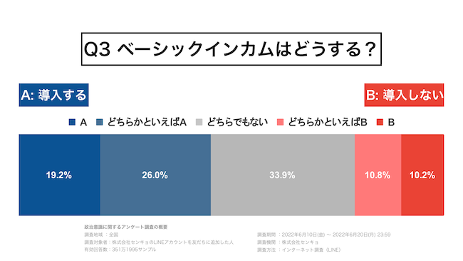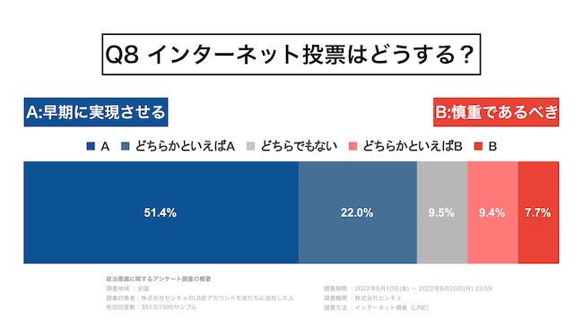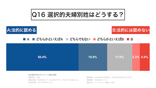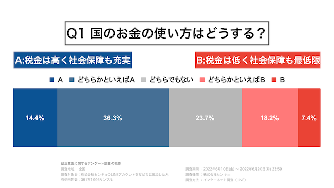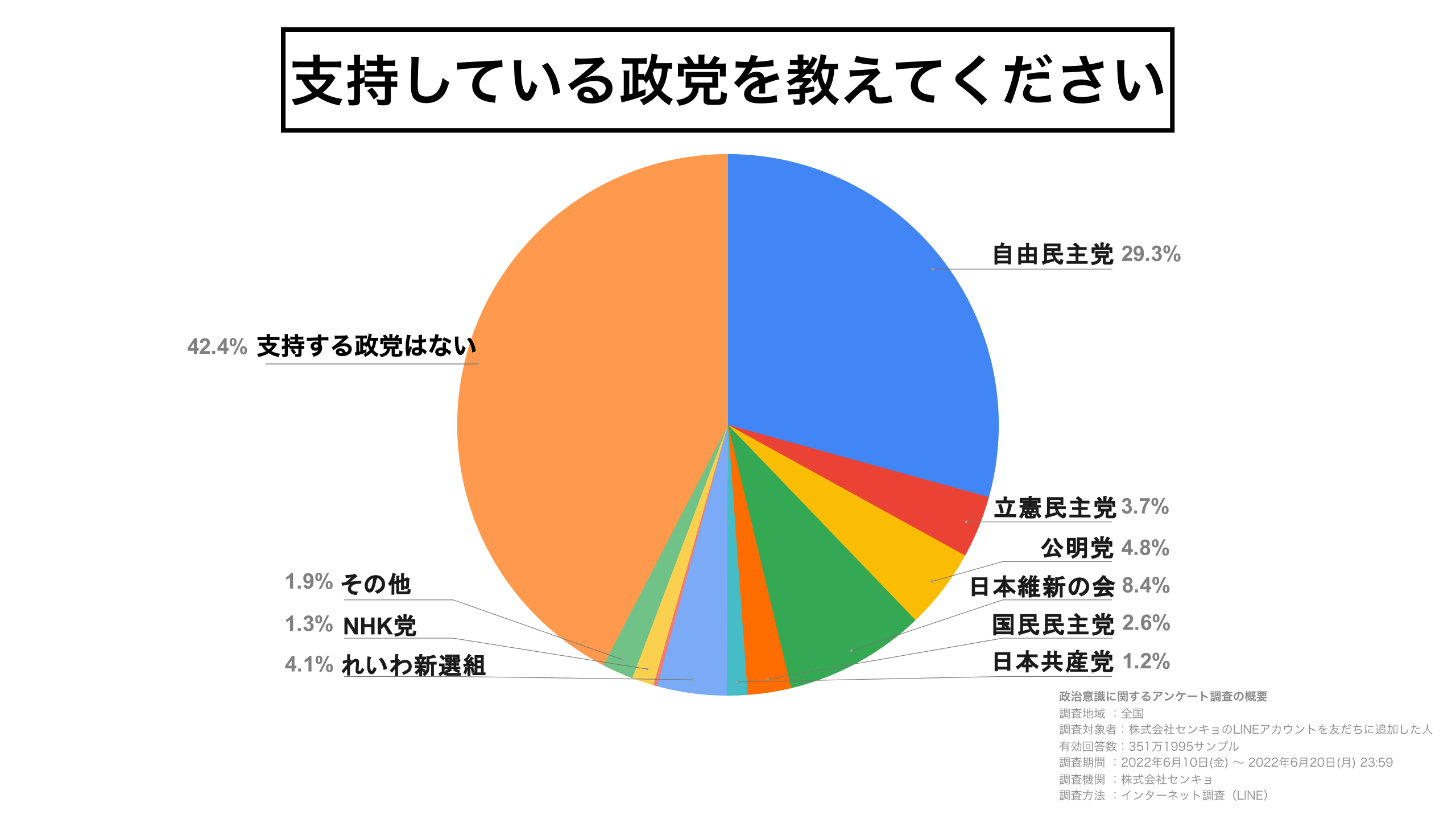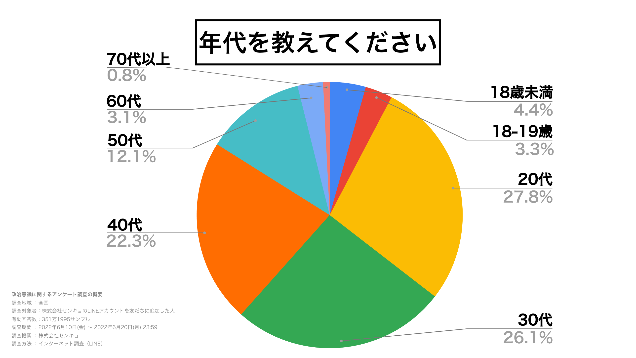 株式会社センキョのLINEアカウントを通じてアンケートに回答いただく形で、登録者数は約374万人、有効回答数は351万1995となりました。