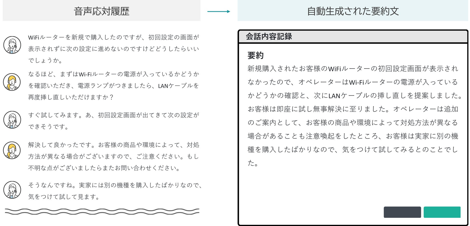 音声データから自動生成される要約文イメージ ※実際の管理画面とは異なります