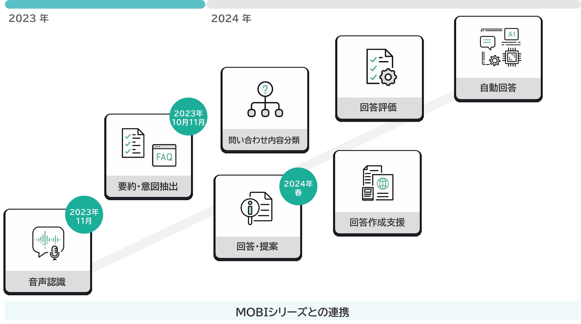 今後さらに付加価値の高いサービスを提供するため、オペレーター支援機能としてMooAに「音声認識」「対話要約生成」「FAQ生成」「回答・提案」等を順次リリースしていきます。