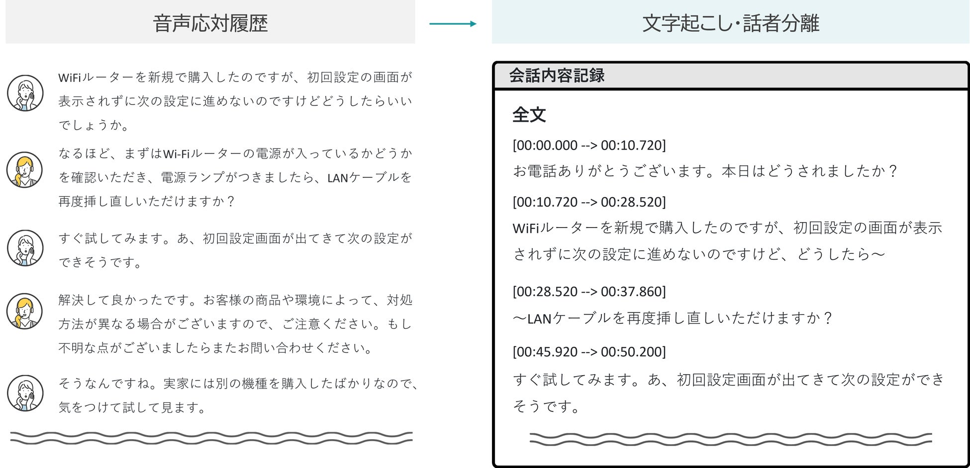 音声認識文字起こしイメージ ※実際の管理画面とは異なります