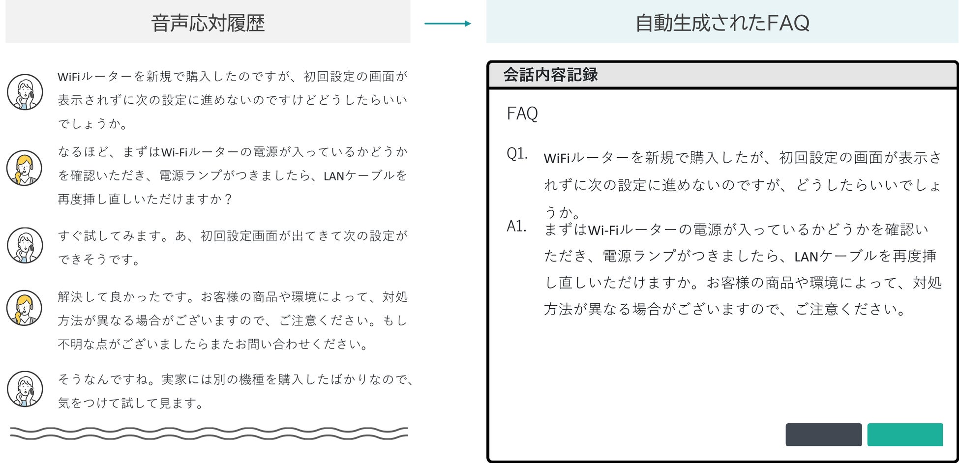 音声応対履歴から自動生成されるFAQイメージ ※実際の管理画面とは異なります