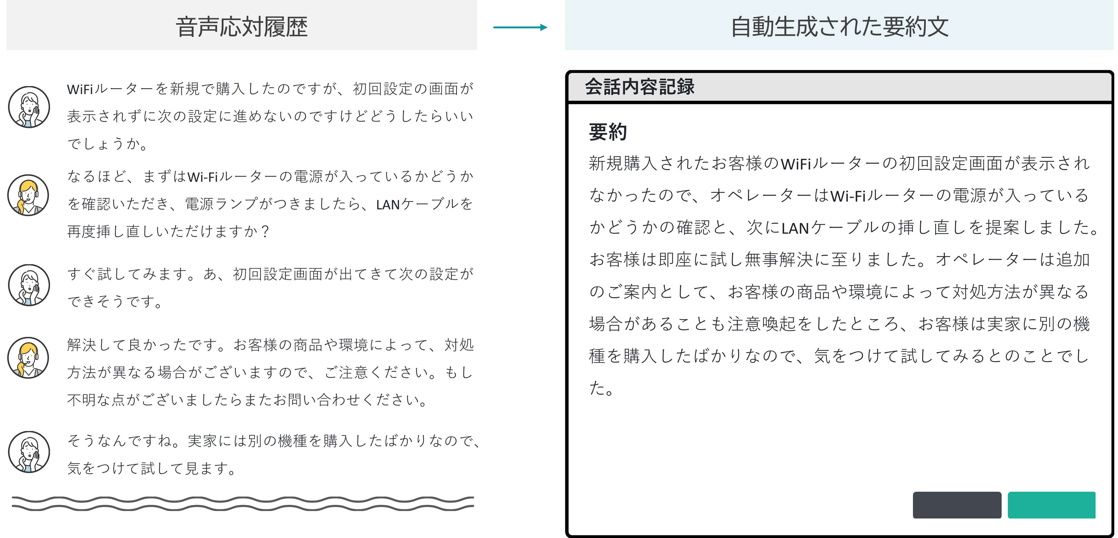 音声データから自動生成される要約文イメージ ※実際の管理画面とは異なります