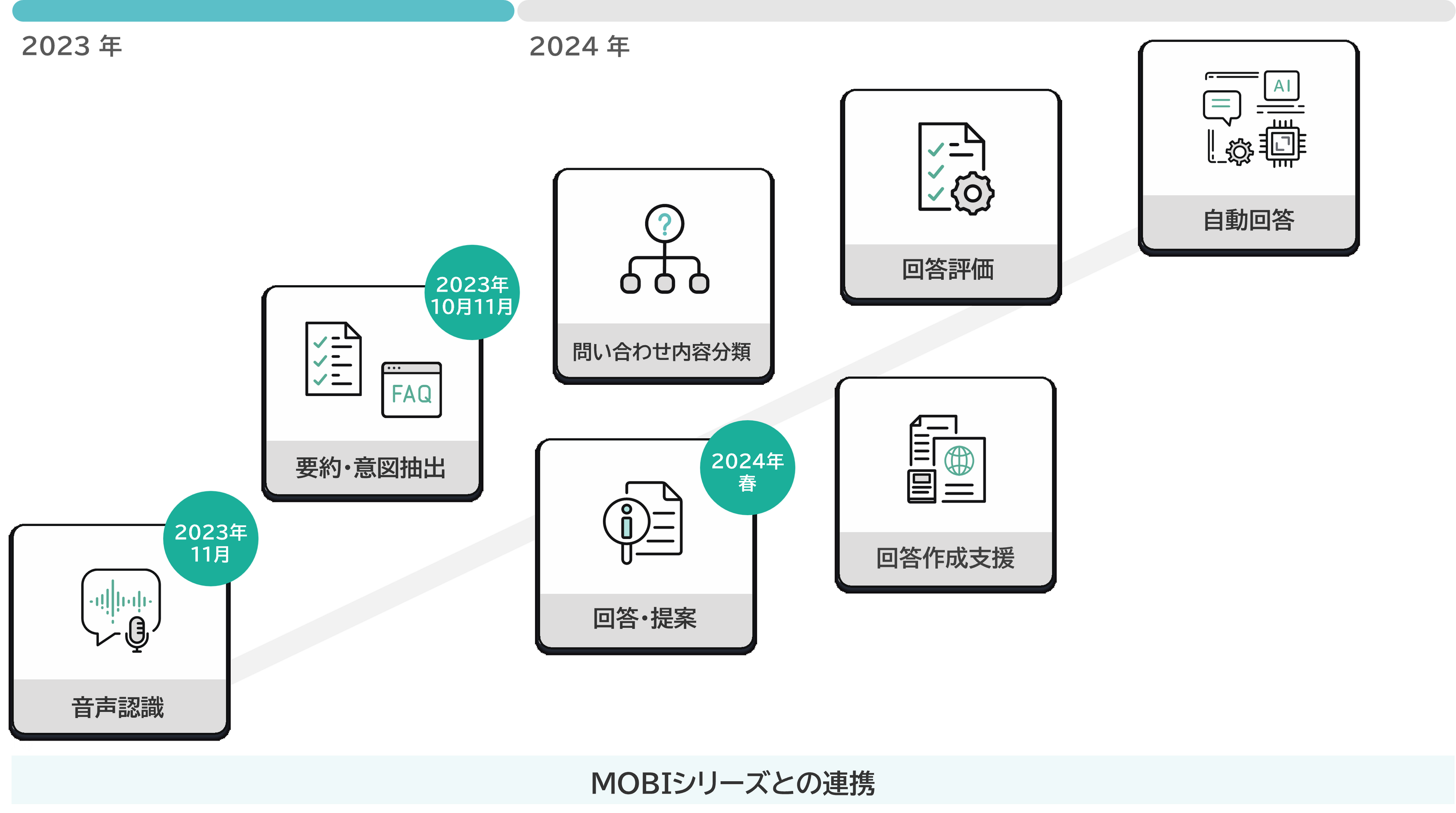 今後さらに付加価値の高いサービスを提供するため、オペレーター支援機能としてMooAに「音声認識」「対話要約生成」「FAQ生成」「回答・提案」等を順次リリースしていきます。