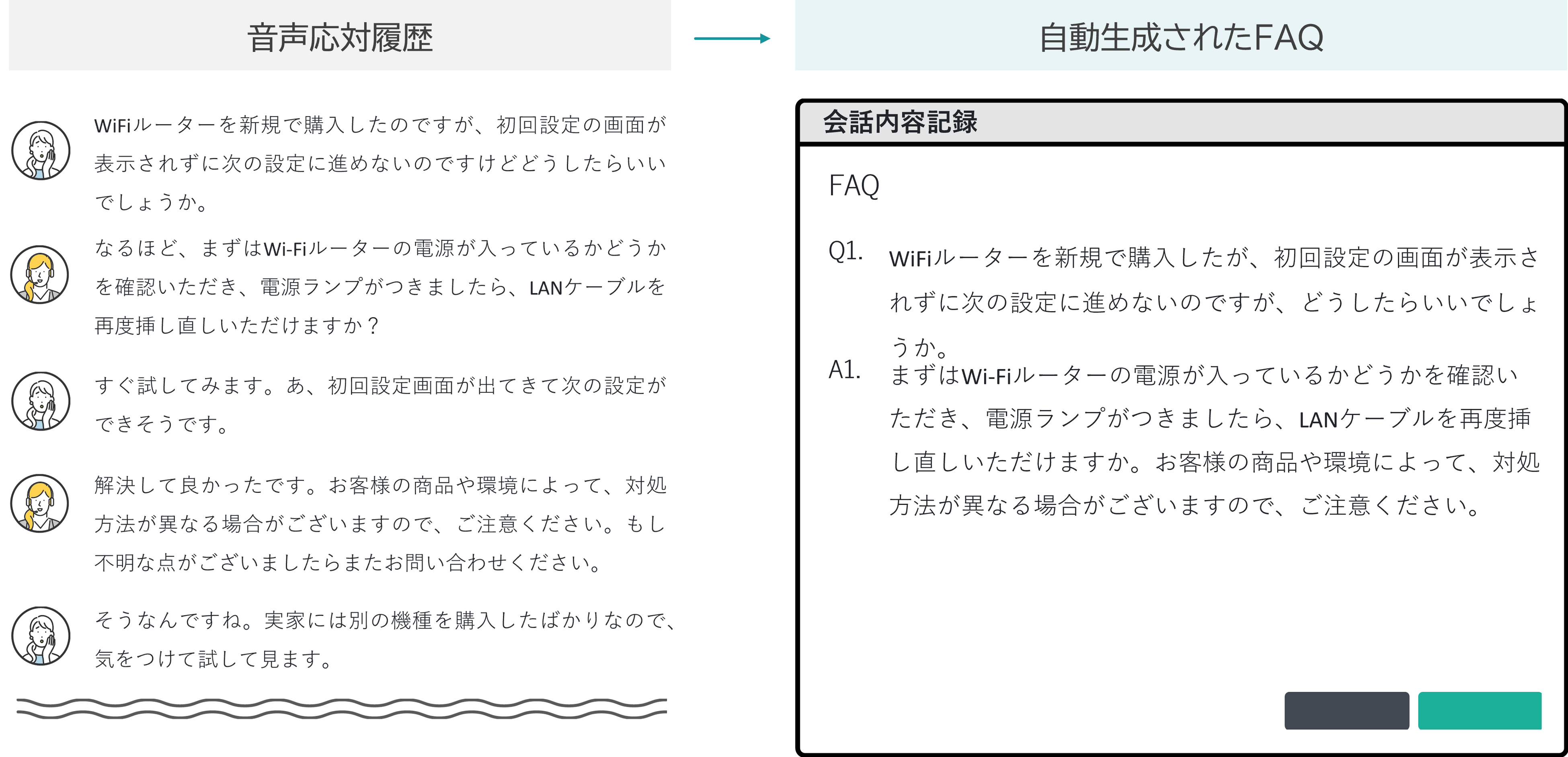 音声応対履歴から自動生成されるFAQイメージ ※実際の管理画面とは異なります