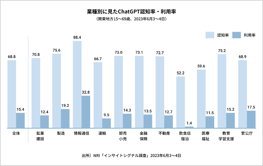 出典:野村総合研究所のデータをもとにGunosyが作成(2023/06/22発表「日本のChatGPT利用動向 2023年6月時点」)