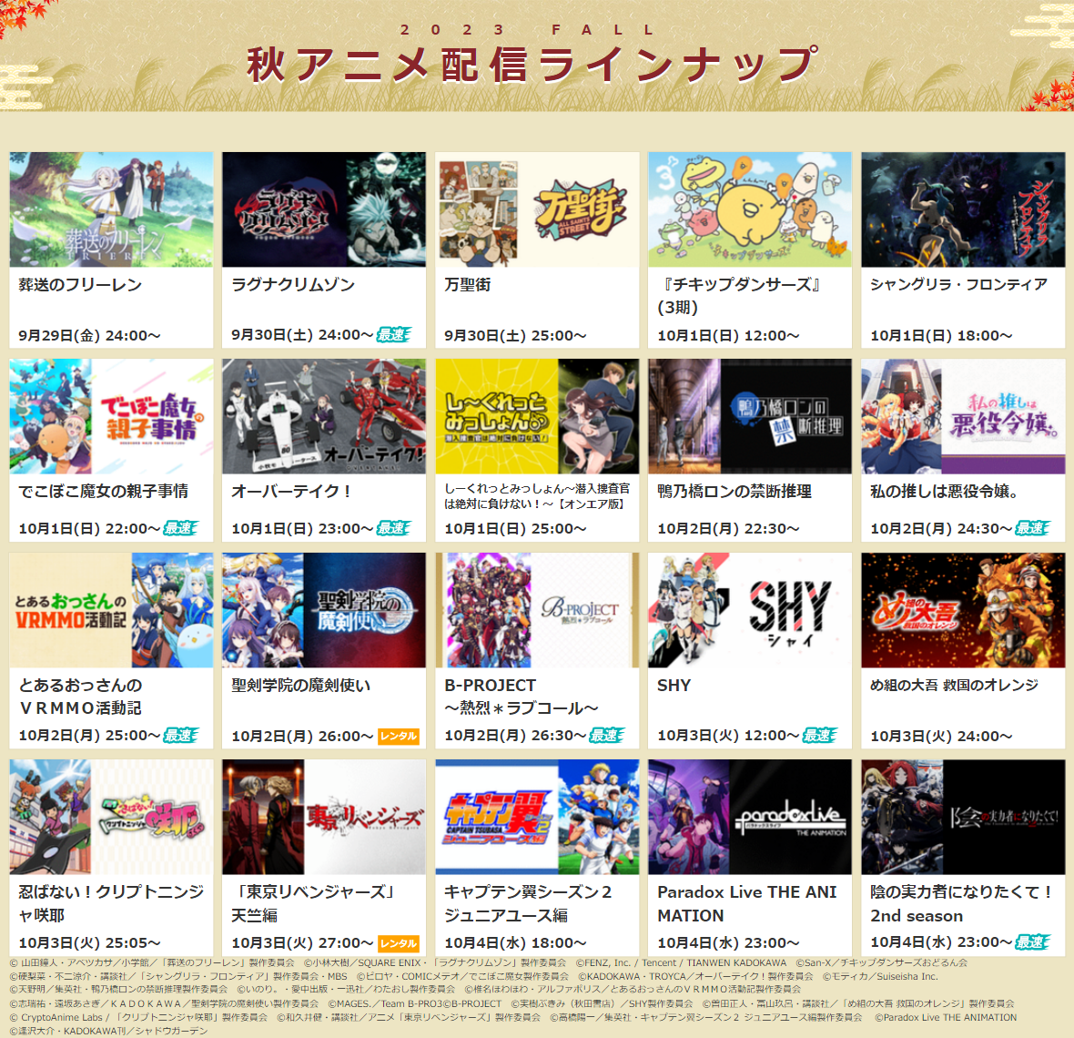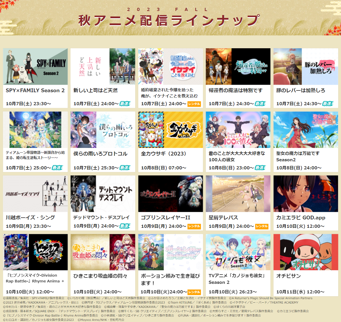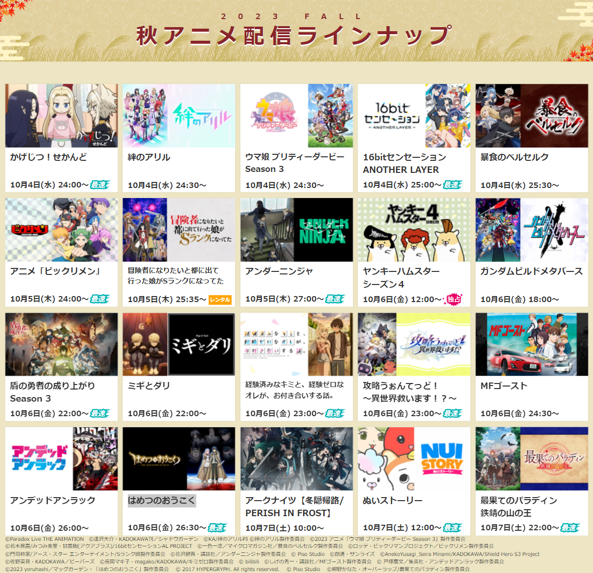 ※詳細は次項目「■2023秋アニメ・配信決定一覧」 及び ラインナップページをご確認ください
