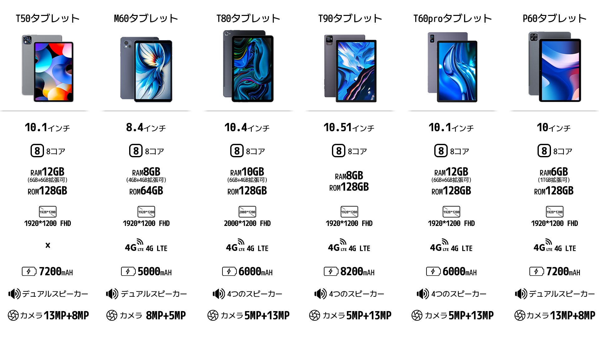 T50 / M60 / T80 / T90 / T60pro / P60 スペック