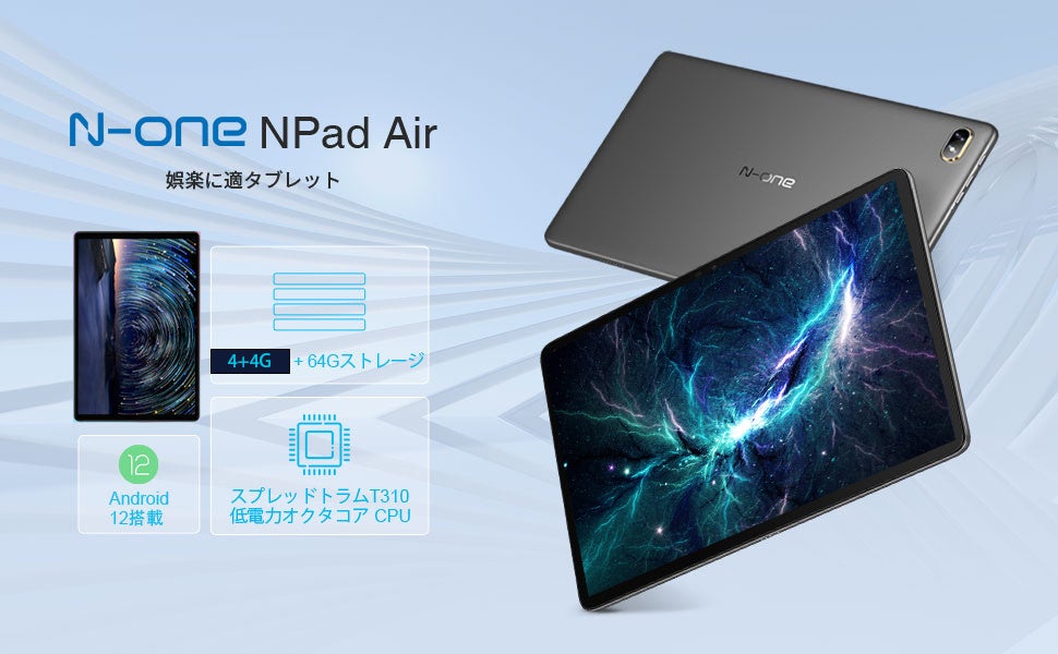 タブレット アンドロイド Android 12、N-one NPad Air タブレット 10インチ wi-fiモデル、RAM 8GB (4+4拡張)/ROM 64GB、2.0GHz T310CPU、1280*800解像度 HD IPSディスプレイ、4G LTE モデルタブレットPC、GMS認証+Type-C+Bluetooth 5.0+GPS+2.4G/5G WiFi+6600mAh+最大1TB TF拡張、日本語取扱説明書付き