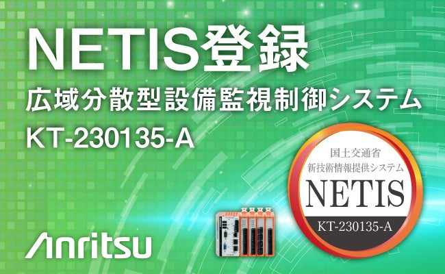 アンリツ株式会社(社長 濱田 宏一)は、分散型遠方監視装置が2023年10月4日付けで国土交通省が運営する新技術情報提供システム「NETIS」(ネティス)に登録されたことをお知らせいたします。