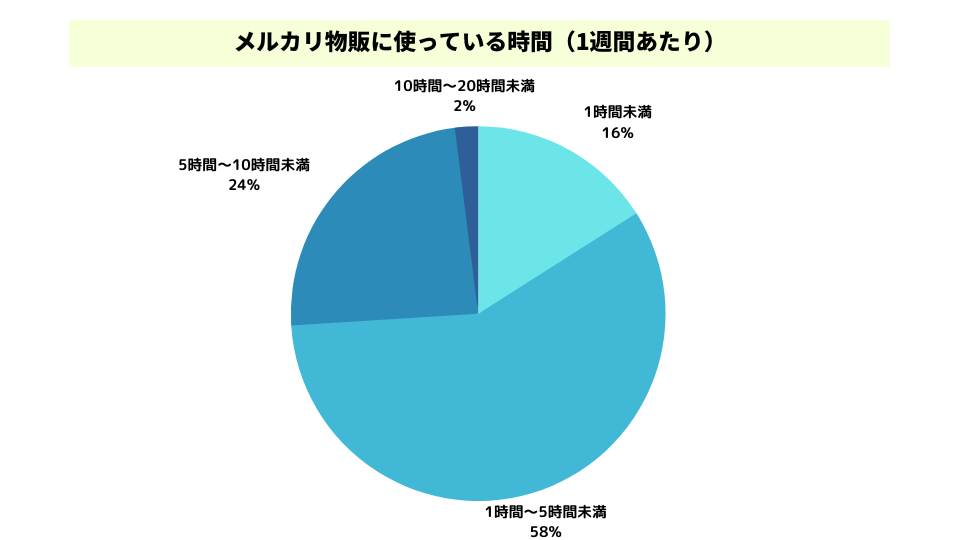 以下は1週間のうちどのくらいの時間をメルカリ物販に費やしているかという設問に対するアンケート結果です。