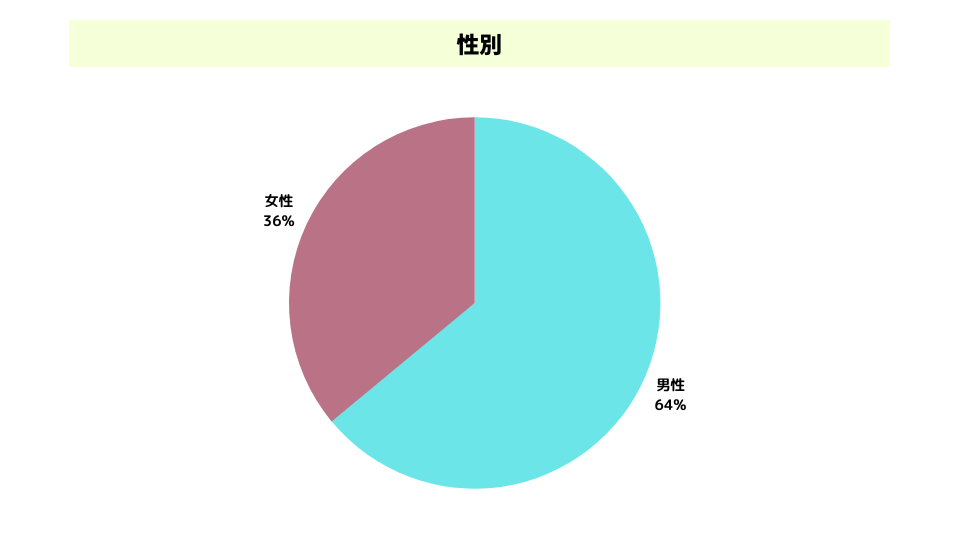 回答者の男性と女性の割合は、おおよそ2:1 となりました。