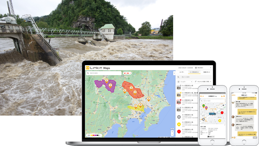 「Linkit Maps」の防災活用例:現場の被害状況を本部と現場の作業員とで瞬時に共有