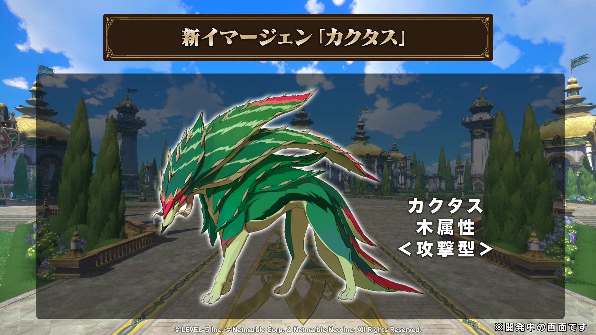 木属性の希少★4イマージェン「カクタス」が新たに登場いたします。「カクタス」は、お供では全属性への与ダメージアップ、クリティカル率アップ、転倒など、決闘では最遠の敵へダメージを与え毒状態にするスキルを持っています。
