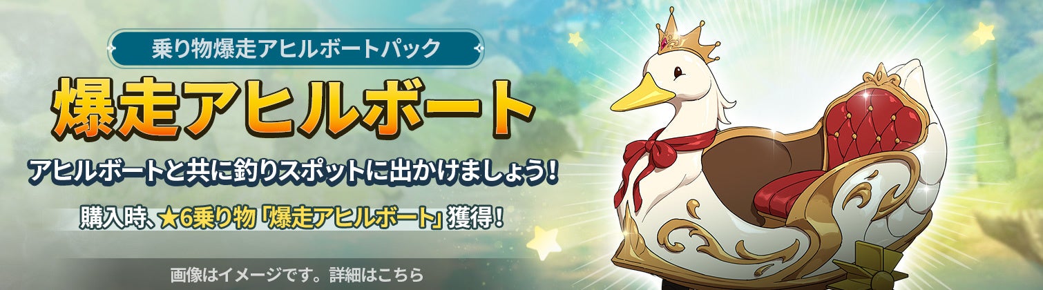 ユニークな動きが可愛らしい乗り物「★6爆走アヒルボート」も登場いたします。「爆走アヒルボート」は、ショップのパック商品から入手することができます。