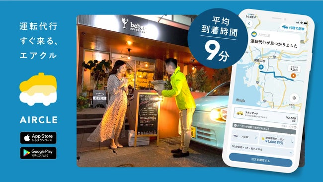 運転代行配車アプリ「AIRCLE(エアクル)」は、利用者と運転代行業者を繋ぐ配車プラットフォームサービスです。現在は沖縄県、福岡県、和歌山県の3県に展開し、国内最大級の運転代行配車サービスとしてシェアを広げています。