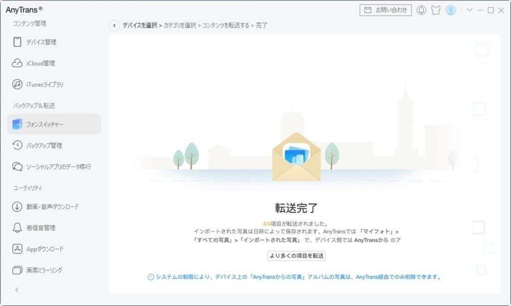 AnyTransはiOSデバイスのデータ管理と転送を簡素化し、多くの便益を提供するツールです。データのバックアップ、転送、管理が容易に行えるため、iOSユーザーにとって非常に便利なソフトウェアの一つです。ダウンロードして使ってみてください。