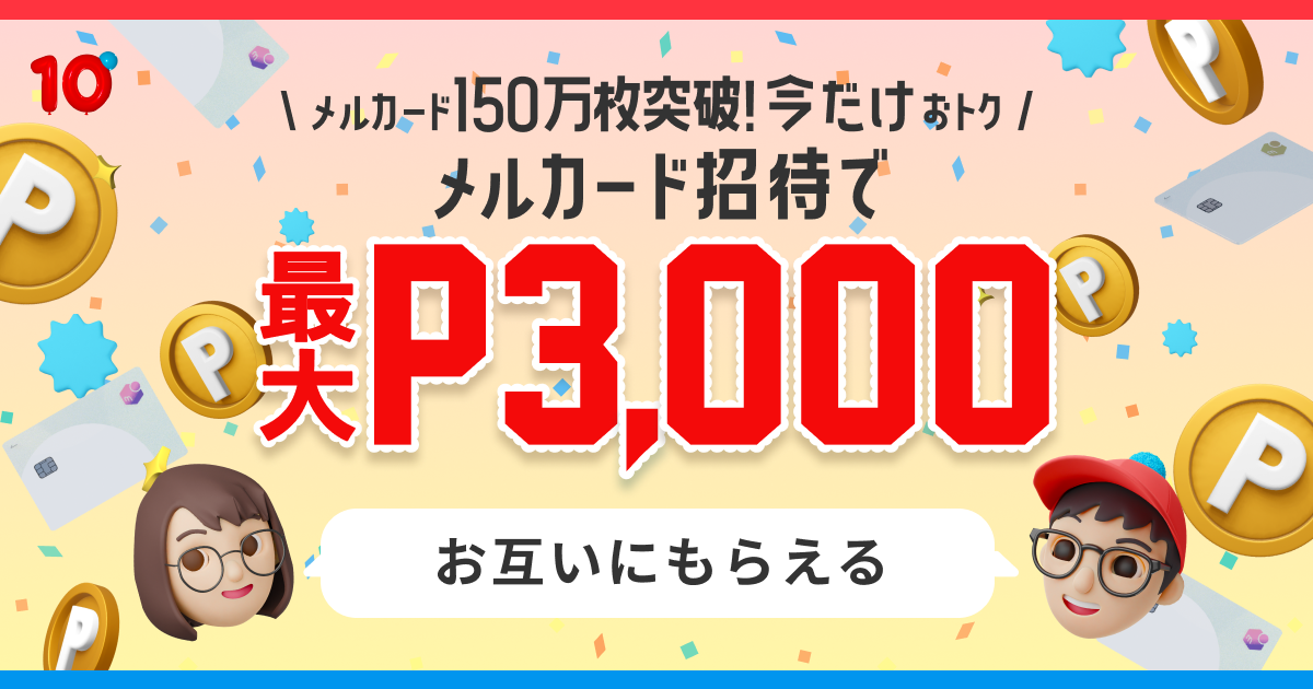 また同時に、「メルカード」において、紹介による入会で最大3,000円分のポイントがもらえる「メルカード 選ばれて150万枚発行突破記念!招待キャンペーン」も開催いたします。