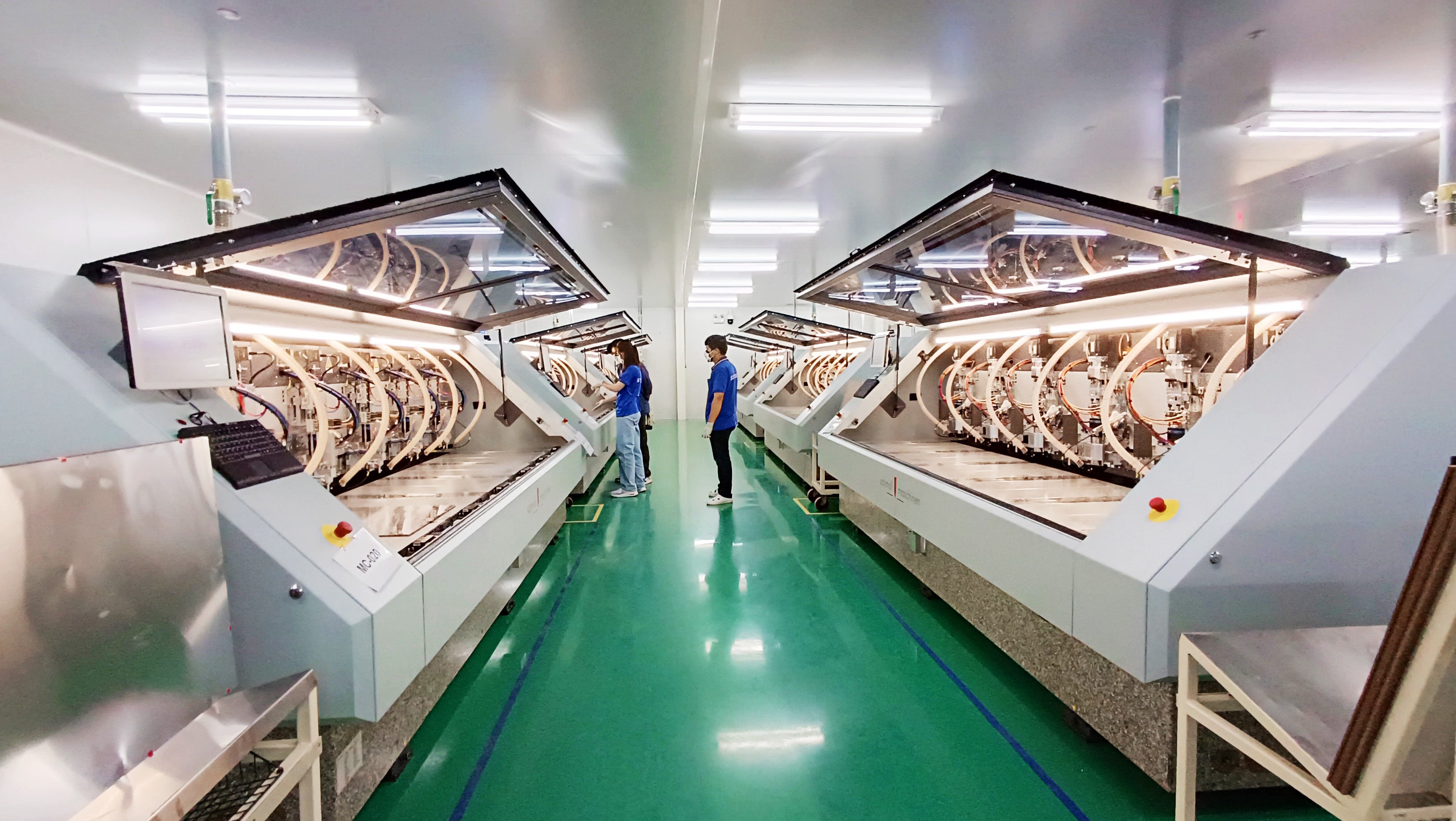 生産性を最大化するために、私たちは業界で最も先進的な機械設備を使用しています。これらの機械設備には、 N6-200 の Schmoll Maschinen ドリルマシン 12 台が含まれます。各ドリルマシンには、最大 200k RPM で回転する 6 軸のスピンドルがあり、ドリル高さのコントロールが可能です。さらに、Hans Laser のレーザー・ダイレクト・イメー ジング (LDI) 技術と Universal (UCE) のウェット加工技術により、優れた精度と優れた製品を提供可能です。