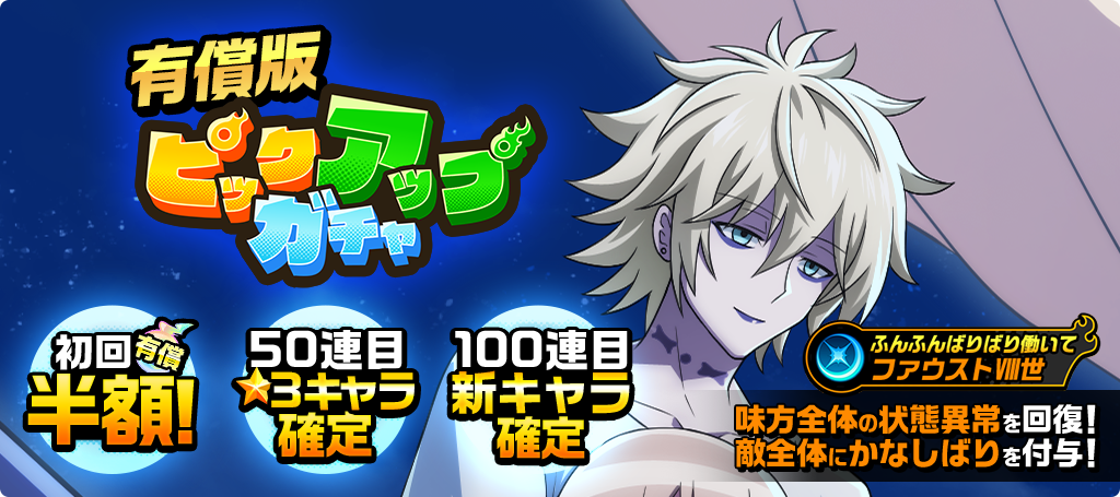 7月22日(金)より、「ピックアップガチャ」を開催いたします。「[ふんふんばりばり働いて] ファウストVIII世(CV: 子安武人)」が、新しく登場いたします。 この機会に是非、ファウストVIII世をGETしましょう!