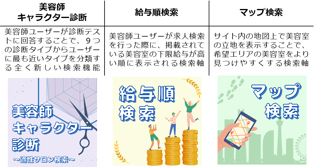 また、この診断結果をもとに「適性サロン検索」を活用することで、自身のキャラクターによりフィットする美容室にフォーカスして検索することもできるようになりました。