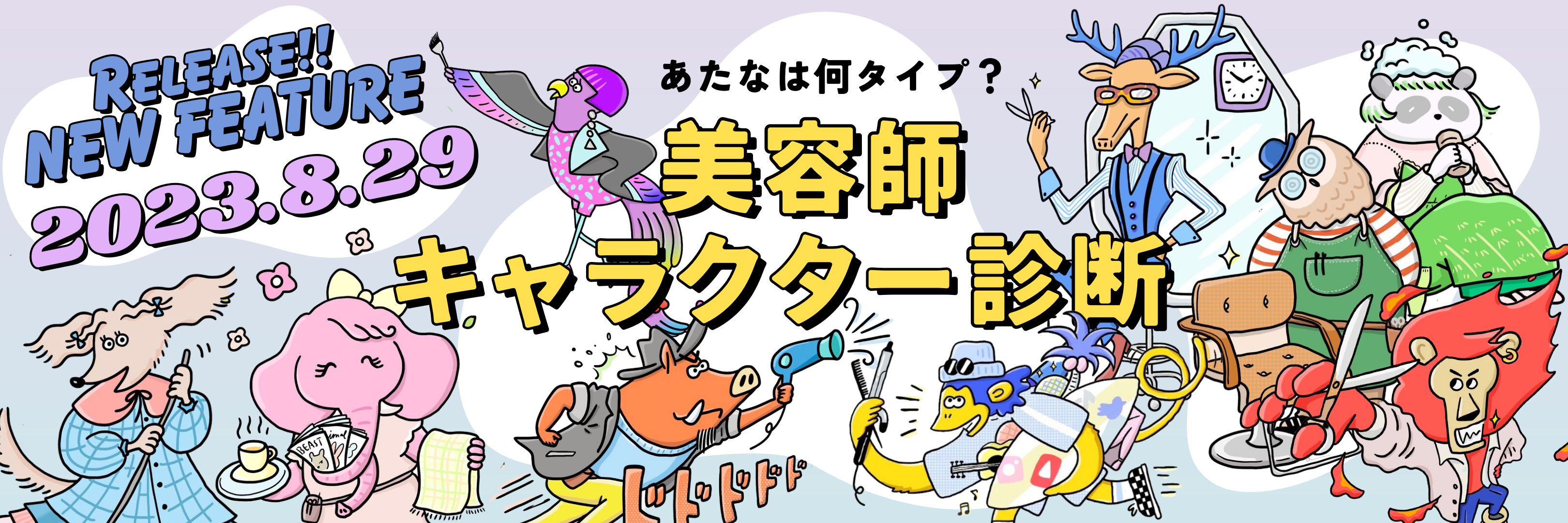 今回新たにリリースした中でも目玉機能は「美容師キャラクター診断」。1970年代からアメリカの心理学・人間学で発展してきた”エニアグラム”を応用した美容師向けの性格診断コンテンツです。美容師ユーザーは自身の特徴を深く掘り下げることで、日頃、気づいていない意識の深層にある欲求や動機を理解し、本来自分が持っている潜在的な可能性や能力を活かしていくためのヒントが見つかります。