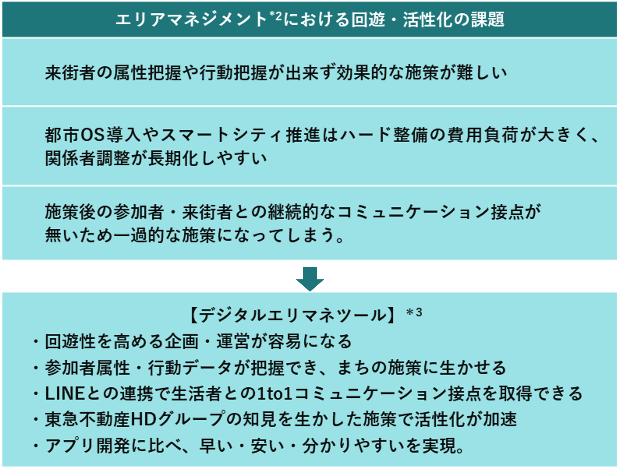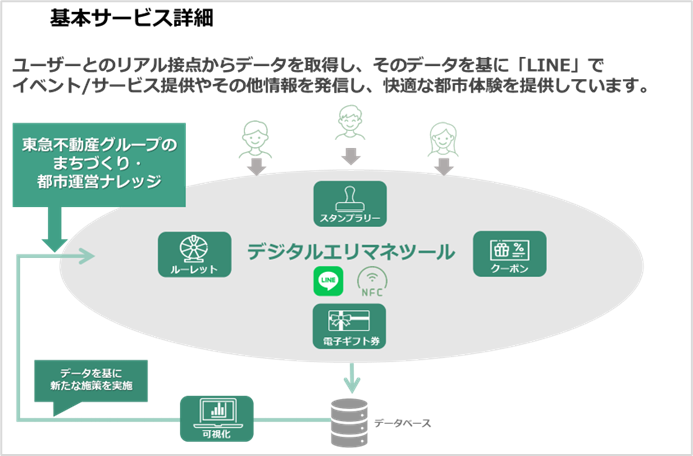 東急不動産HDグループで培った都市運営に関する課題の抽出・解決ノウハウとアクアビット社のIoT技術・デバイスを組み合わせ来街者利便性向上や地域運営データ取得を促進するツールを展開。