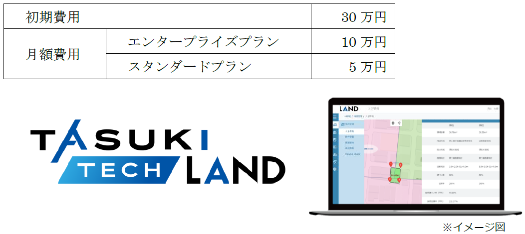 「TASUKI TECH LAND」は、これまで不動産業界内において、紙ベースによる管理が一般的だった土地所有者や仲介事業者から提供される土地情報を、不動産業を営む企業がPCやスマートフォンからクラウド上で一元管理・運用ができるSaaS型サービスです。すべての仕入情報をクラウドで管理することで、業務効率化が可能です。「TASUKI TECH LAND」には、最新の都市情報を自動学習するTASUKI TECH AIが活用されています。