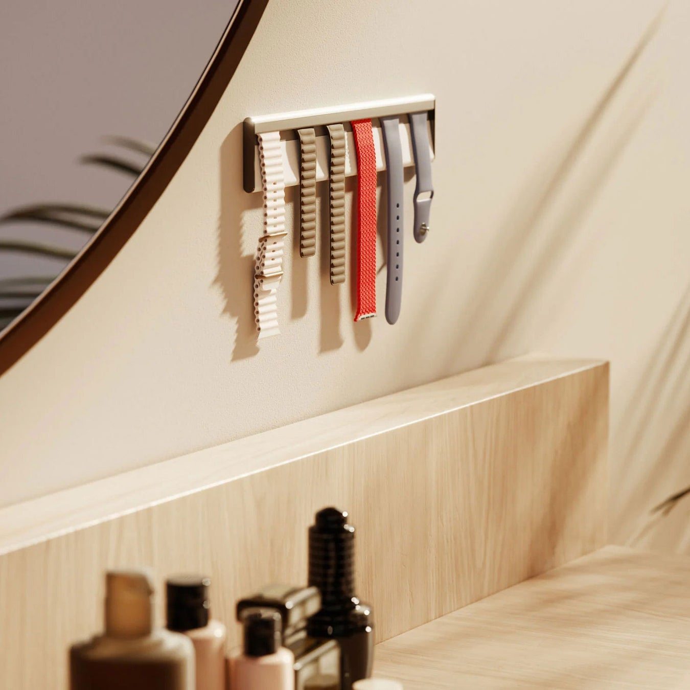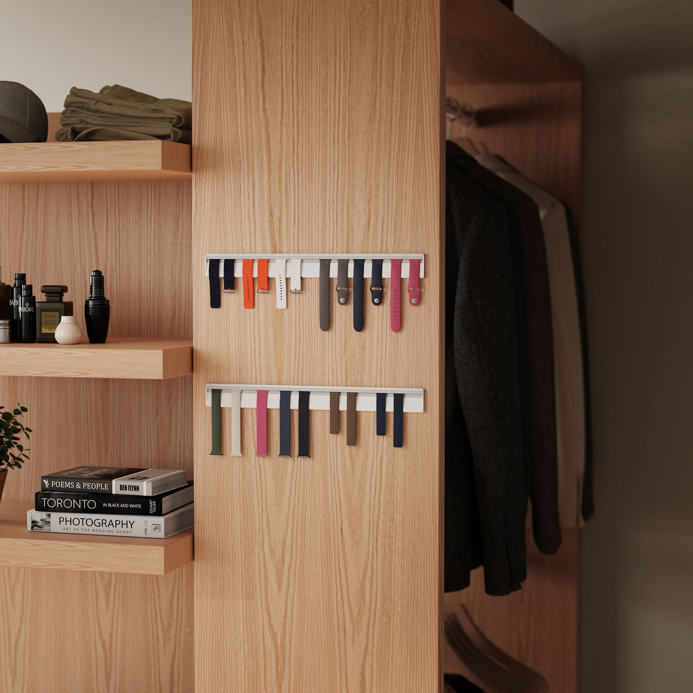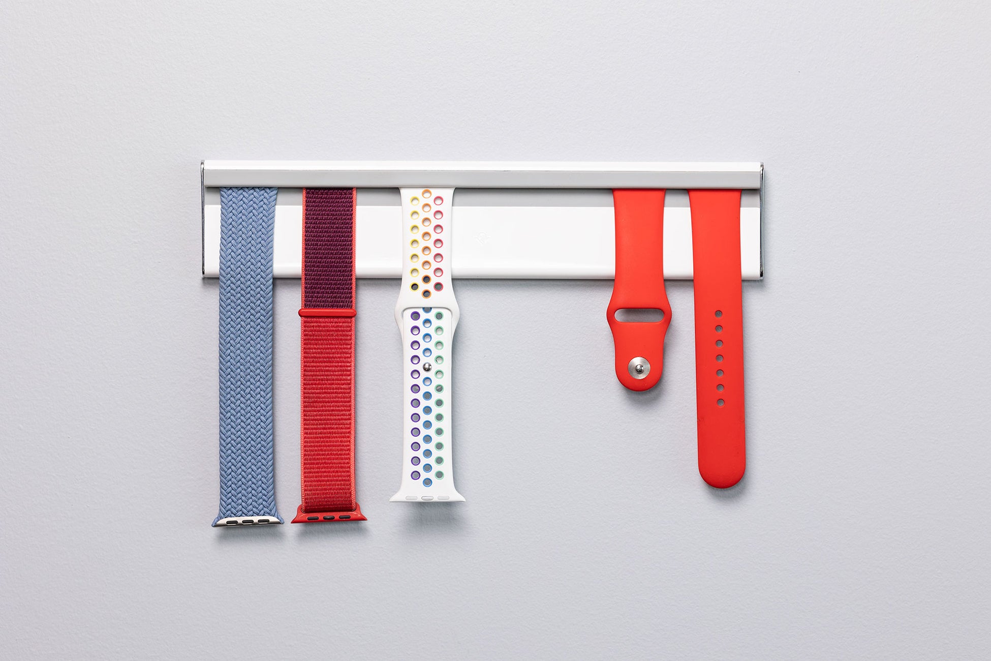 TimePorter Wall Mount Display for Apple Watch Bandsは、最大6本のApple Watchバンドをディスプレイしながら管理できます。お気に入りのバンドを見栄え良く飾り、その日の服装にぴったりのバンドを簡単に見つけてからお出かけできます。TimePorterの白く光沢のある仕上げ加工は、クローゼット内や洗面所など、整理整頓をしたい場所の見栄え良く引き立てます。壁や表面に安全に取り付けられ、必要に応じて簡単に取り外すことができます。6本以上のバンドのコレクションをお持ちですか? 複数のTimePorterを連結して、ぜひすべてのお気に入りのApple Watchバンドを室内に展示しましょう。もう引き出しの中を探したり、お気に入りのバンドの片方しか見つからなかったりすることがなくなります。Apple製品が大好きな皆様へのギフトや、自分へのご褒美におすすめです。