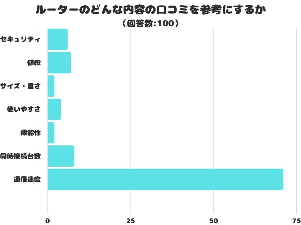 ルーターのどんな内容の口コミを参考にするかをアンケートにて調査したところ、1位は「通信速度」でした。