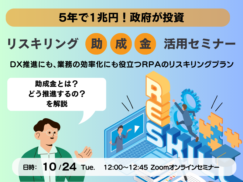この助成金が活用でき、業務効率化もスキルアップもかなう「RPAのリスキリングメニュー」について、お伝えします。