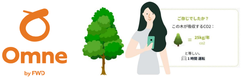 またゲームやヘルススキャンなどで貯めたOmneのポイントを使って、世界の国々の木の里親になることができます。里親になった木の成長にあわせて、その木が削減したCO2削減量の確認もでき、習慣づくりをしながらCO2削減に貢献できるユニークな仕組みも提供します。