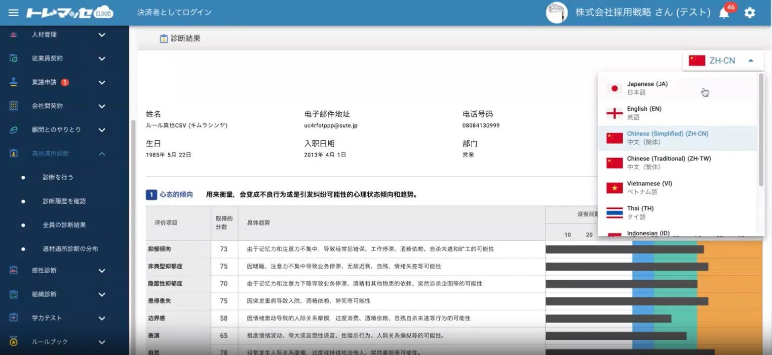 適材適所と感性、組織の3つの診断が多言語で行えるようになりました。